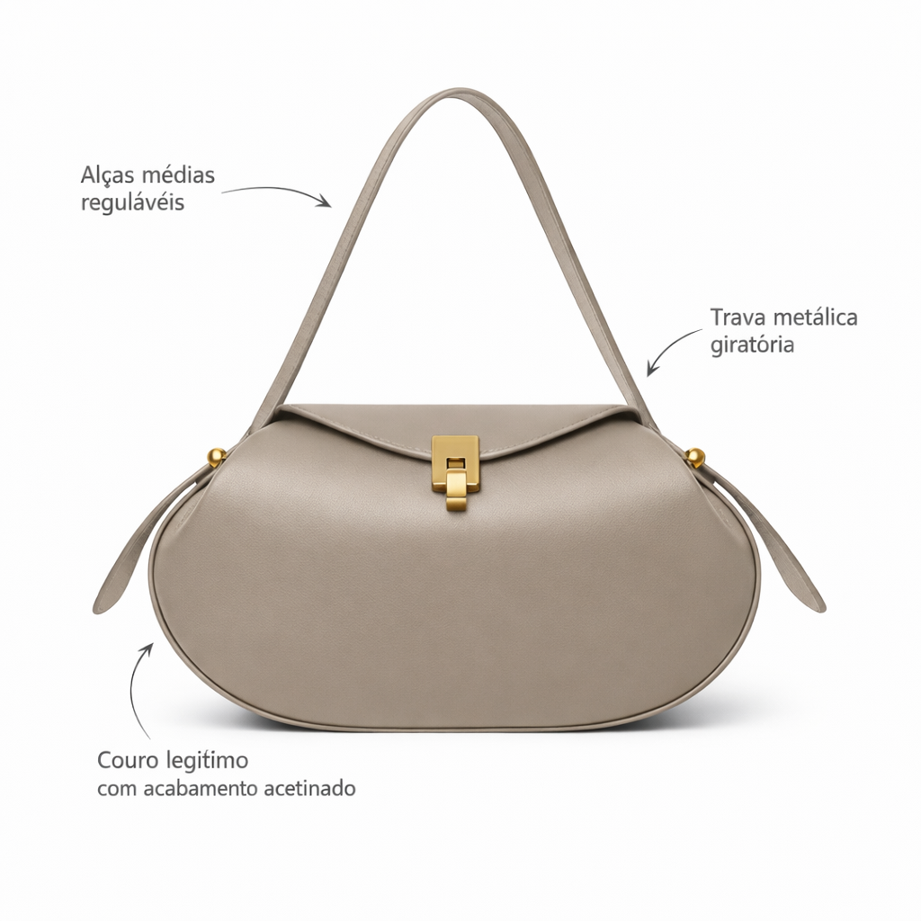 ▪️ Tipo da bolsa: Hobo estruturado — com geometria ovalada, o conceito é pautado na união entre o minimalismo contemporâneo e o design escultural, oferecendo uma peça autoral de luxo discreto.