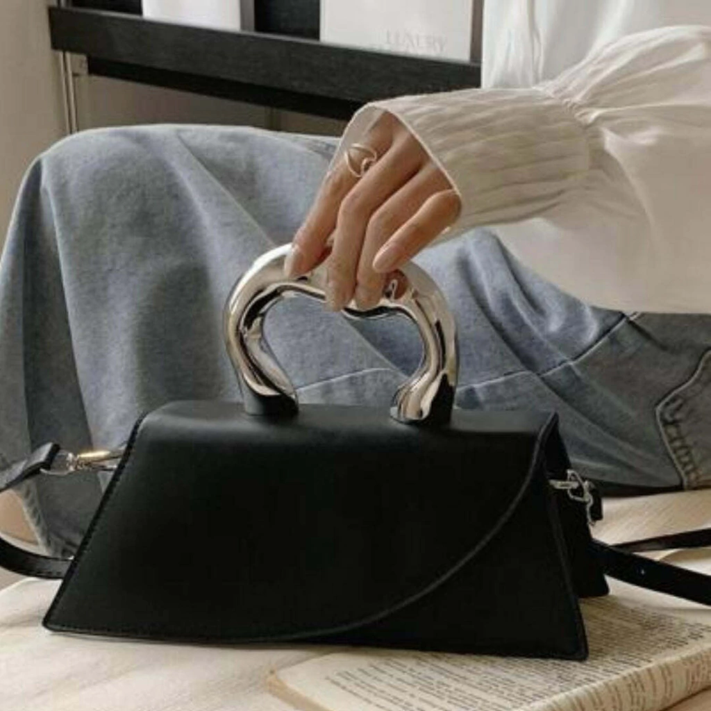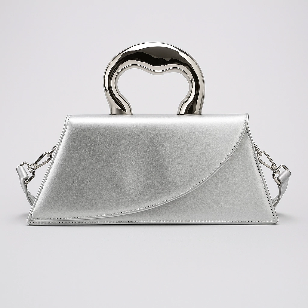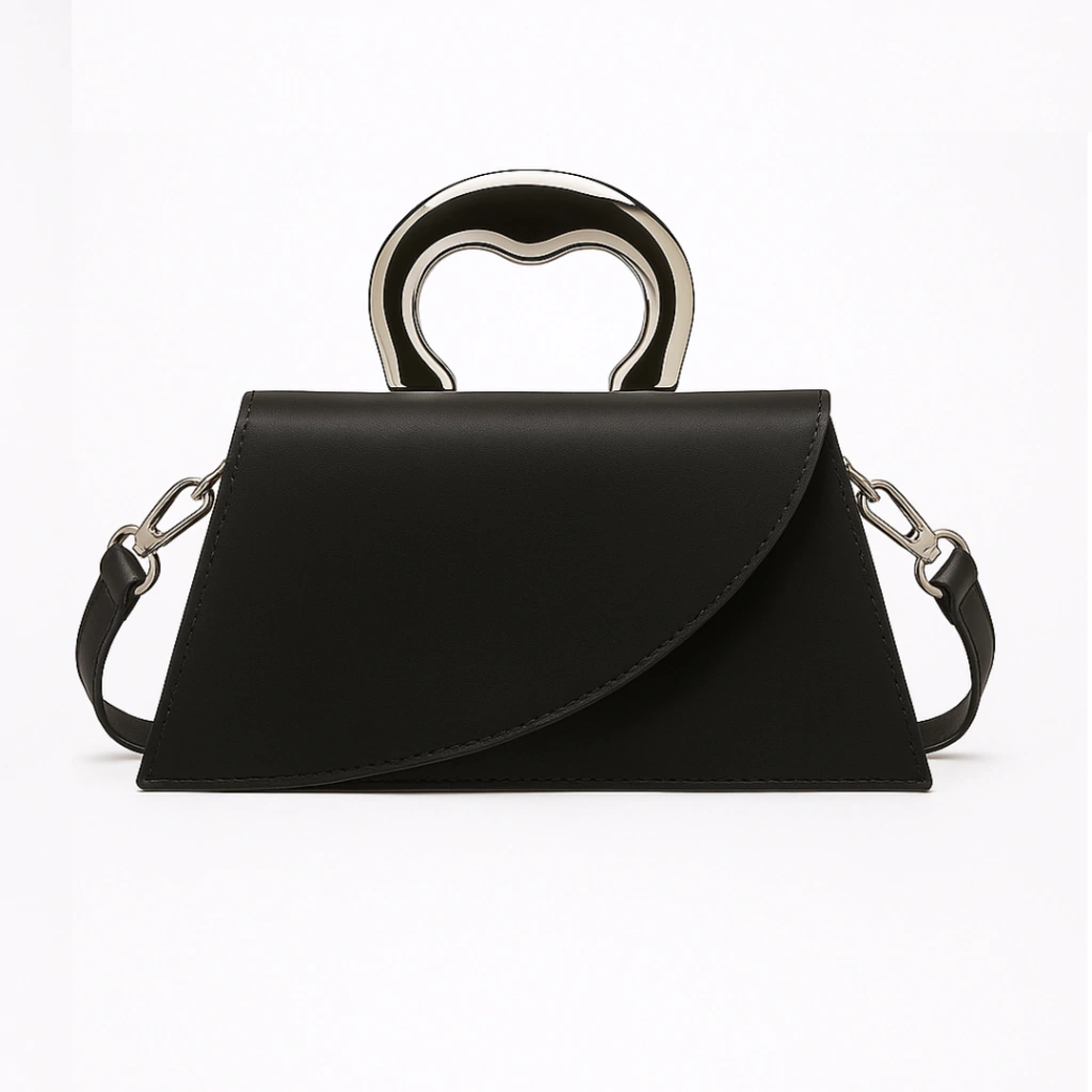 ▪️ Tipo de bolsa: Top Handle — inspiração geométrica e proposta fashion statement. Modelo sofisticado, ideal para eventos sociais ou produções noturnas.